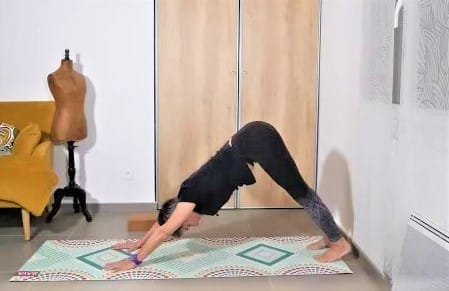 Exemple de posture : Le Chien Tête en Bas Cette posture améliore la circulation sanguine, étire tout le corps et revitalise en douceur.